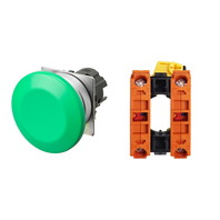 押ボタンスイッチ(φ22), 非照光, 金属ベゼル, きのこ形, モーメンタリ, ボタンの色: 緑(不透明), IP66, ねじ端子台, 接点構成: NC/-/NC