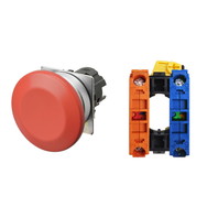 押ボタンスイッチ(φ22), 非照光, 金属ベゼル, きのこ形, モーメンタリ, ボタンの色: 赤(不透明), IP66, ねじ端子台, 接点構成: NO/-/NC
