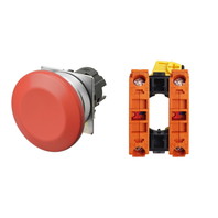 押ボタンスイッチ(φ22), 非照光, 金属ベゼル, きのこ形, モーメンタリ, ボタンの色: 赤(不透明), IP66, ねじ端子台, 接点構成: NC/-/NC