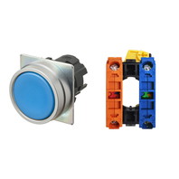 押ボタンスイッチ(φ22), 非照光, 金属ベゼル, 平形, オルタネイト, ボタンの色: 青(不透明), IP66, ねじ端子台, 接点構成: NO/-/NC