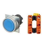 押ボタンスイッチ(φ22), 非照光, 金属ベゼル, 平形, オルタネイト, ボタンの色: 青(不透明), IP66, ねじ端子台, 接点構成: NC/-/NC