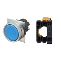 押ボタンスイッチ(φ22), 非照光, 金属ベゼル, 平形, オルタネイト, ボタンの色: 青(不透明), IP66, プッシュインPlus端子台, 接点構成: NO/-/-