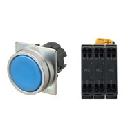 押ボタンスイッチ(φ22), 非照光, 金属ベゼル, 平形, オルタネイト, ボタンの色: 青(不透明), IP66, プッシュインPlus端子台, 接点構成: NC/NC/NC