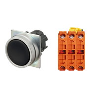 押ボタンスイッチ(φ22), 非照光, 金属ベゼル, 平形, オルタネイト, ボタンの色: 黒(不透明), IP66, ねじ端子台, 接点構成: NC/NC/NC