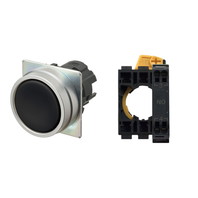 押ボタンスイッチ(φ22), 非照光, 金属ベゼル, 平形, オルタネイト, ボタンの色: 黒(不透明), IP66, プッシュインPlus端子台, 接点構成: NO/-/-
