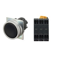 押ボタンスイッチ(φ22), 非照光, 金属ベゼル, 平形, オルタネイト, ボタンの色: 黒(不透明), IP66, プッシュインPlus端子台, 接点構成: NC/NC/NC