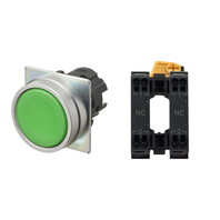 押ボタンスイッチ(φ22), 非照光, 金属ベゼル, 平形, オルタネイト, ボタンの色: 緑(不透明), IP66, プッシュインPlus端子台, 接点構成: NC/-/NC