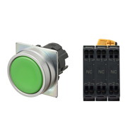 押ボタンスイッチ(φ22), 非照光, 金属ベゼル, 平形, オルタネイト, ボタンの色: 緑(不透明), IP66, プッシュインPlus端子台, 接点構成: NC/NC/NC