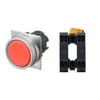 押ボタンスイッチ(φ22), 非照光, 金属ベゼル, 平形, オルタネイト, ボタンの色: 赤(不透明), IP66, プッシュインPlus端子台, 接点構成: NO/-/NO