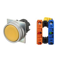 押ボタンスイッチ(φ22), 非照光, 金属ベゼル, 平形, オルタネイト, ボタンの色: 黄(不透明), IP66, ねじ端子台, 接点構成: NO/-/NC