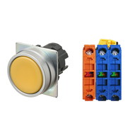 押ボタンスイッチ(φ22), 非照光, 金属ベゼル, 平形, オルタネイト, ボタンの色: 黄(不透明), IP66, ねじ端子台, 接点構成: NO/NO/NC