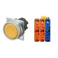押ボタンスイッチ(φ22), 非照光, 金属ベゼル, 平形, オルタネイト, ボタンの色: 黄(不透明), IP66, ねじ端子台, 接点構成: NO/NC/NC