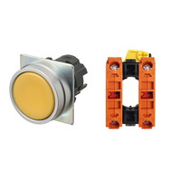 押ボタンスイッチ(φ22), 非照光, 金属ベゼル, 平形, オルタネイト, ボタンの色: 黄(不透明), IP66, ねじ端子台, 接点構成: NC/-/NC