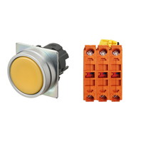 押ボタンスイッチ(φ22), 非照光, 金属ベゼル, 平形, オルタネイト, ボタンの色: 黄(不透明), IP66, ねじ端子台, 接点構成: NC/NC/NC