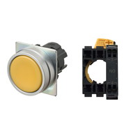 押ボタンスイッチ(φ22), 非照光, 金属ベゼル, 平形, オルタネイト, ボタンの色: 黄(不透明), IP66, プッシュインPlus端子台, 接点構成: NO/-/-