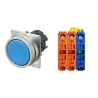 押ボタンスイッチ(φ22), 非照光, 金属ベゼル, 平形, モーメンタリ, ボタンの色: 青(不透明), IP66, ねじ端子台, 接点構成: NO/NC/NC