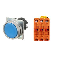 押ボタンスイッチ(φ22), 非照光, 金属ベゼル, 平形, モーメンタリ, ボタンの色: 青(不透明), IP66, ねじ端子台, 接点構成: NC/NC/NC