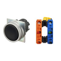 押ボタンスイッチ(φ22), 非照光, 金属ベゼル, 平形, モーメンタリ, ボタンの色: 黒(不透明), IP66, ねじ端子台, 接点構成: NO/-/NC