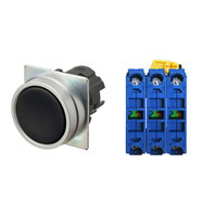 押ボタンスイッチ(φ22), 非照光, 金属ベゼル, 平形, モーメンタリ, ボタンの色: 黒(不透明), IP66, ねじ端子台, 接点構成: NO/NO/NO