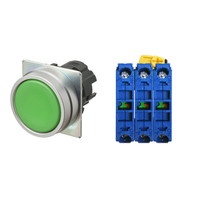 押ボタンスイッチ(φ22), 非照光, 金属ベゼル, 平形, モーメンタリ, ボタンの色: 緑(不透明), IP66, ねじ端子台, 接点構成: NO/NO/NO