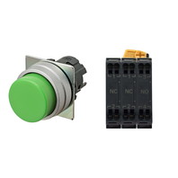 押ボタンスイッチ(φ22), 非照光, 金属ベゼル, 突出形, オルタネイト, ボタンの色: 緑(不透明), IP66, プッシュインPlus端子台, 接点構成: NO/NC/NC