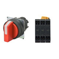 セレクタスイッチ(φ22), 非照光, 3ノッチ, 樹脂ベゼル, 左右に自動復帰, 操作部色: 赤(不透明), IP66, プッシュインPlus端子台, 接点構成: NO/NC/NC