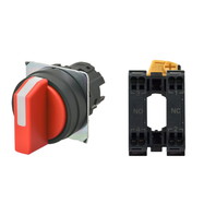セレクタスイッチ(φ22), 非照光, 3ノッチ, 樹脂ベゼル, 左右に自動復帰, 操作部色: 赤(不透明), IP66, プッシュインPlus端子台, 接点構成: NC/-/NO