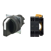 セレクタスイッチ(φ22), 非照光, 3ノッチ, 樹脂ベゼル, 左に自動復帰, 操作部色: 黒(不透明), IP66, プッシュインPlus端子台, 接点構成: -/NO/NC