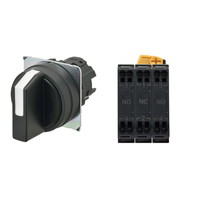 セレクタスイッチ(φ22), 非照光, 3ノッチ, 樹脂ベゼル, 左に自動復帰, 操作部色: 黒(不透明), IP66, プッシュインPlus端子台, 接点構成: NO/NC/NO