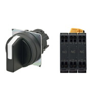 セレクタスイッチ(φ22), 非照光, 3ノッチ, 樹脂ベゼル, 左に自動復帰, 操作部色: 黒(不透明), IP66, プッシュインPlus端子台, 接点構成: NC/NC/NO