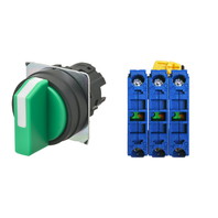 セレクタスイッチ(φ22), 非照光, 3ノッチ, 樹脂ベゼル, 左に自動復帰, 操作部色: 緑(不透明), IP66, ねじ端子台, 接点構成: NO/NO/NO