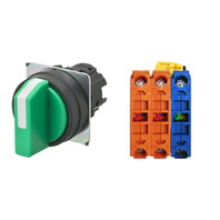 セレクタスイッチ(φ22), 非照光, 3ノッチ, 樹脂ベゼル, 左に自動復帰, 操作部色: 緑(不透明), IP66, ねじ端子台, 接点構成: NO/NC/NC
