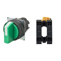 セレクタスイッチ(φ22), 非照光, 3ノッチ, 樹脂ベゼル, 左に自動復帰, 操作部色: 緑(不透明), IP66, プッシュインPlus端子台, 接点構成: NO/-/NO