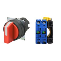 セレクタスイッチ(φ22), 非照光, 3ノッチ, 樹脂ベゼル, 左に自動復帰, 操作部色: 赤(不透明), IP66, ねじ端子台, 接点構成: -/NO/NO