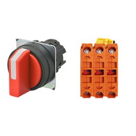 セレクタスイッチ(φ22), 非照光, 3ノッチ, 樹脂ベゼル, 左に自動復帰, 操作部色: 赤(不透明), IP66, ねじ端子台, 接点構成: NC/NC/NC