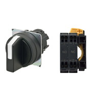 セレクタスイッチ(φ22), 非照光, 3ノッチ, 樹脂ベゼル, 手動復帰, 操作部色: 黒(不透明), IP66, プッシュインPlus端子台, 接点構成: -/NC/NO