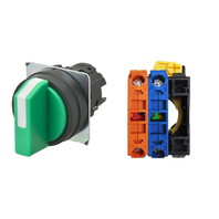 セレクタスイッチ(φ22), 非照光, 3ノッチ, 樹脂ベゼル, 手動復帰, 操作部色: 緑(不透明), IP66, ねじ端子台, 接点構成: -/NO/NC