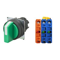 セレクタスイッチ(φ22), 非照光, 3ノッチ, 樹脂ベゼル, 手動復帰, 操作部色: 緑(不透明), IP66, ねじ端子台, 接点構成: NO/NO/NC