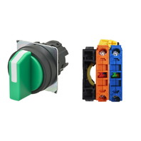 セレクタスイッチ(φ22), 非照光, 3ノッチ, 樹脂ベゼル, 手動復帰, 操作部色: 緑(不透明), IP66, ねじ端子台, 接点構成: NO/NC/-