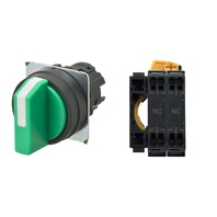 セレクタスイッチ(φ22), 非照光, 3ノッチ, 樹脂ベゼル, 手動復帰, 操作部色: 緑(不透明), IP66, プッシュインPlus端子台, 接点構成: NC/NC/-