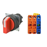 セレクタスイッチ(φ22), 非照光, 3ノッチ, 樹脂ベゼル, 手動復帰, 操作部色: 赤(不透明), IP66, ねじ端子台, 接点構成: NO/NC/NC