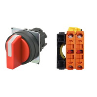 セレクタスイッチ(φ22), 非照光, 3ノッチ, 樹脂ベゼル, 手動復帰, 操作部色: 赤(不透明), IP66, ねじ端子台, 接点構成: NC/NC/-