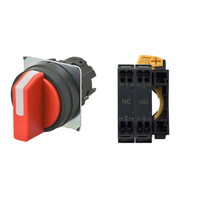 セレクタスイッチ(φ22), 非照光, 3ノッチ, 樹脂ベゼル, 手動復帰, 操作部色: 赤(不透明), IP66, プッシュインPlus端子台, 接点構成: -/NO/NC