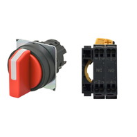 セレクタスイッチ(φ22), 非照光, 3ノッチ, 樹脂ベゼル, 手動復帰, 操作部色: 赤(不透明), IP66, プッシュインPlus端子台, 接点構成: NO/NC/-