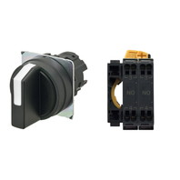 セレクタスイッチ(φ22), 非照光, 3ノッチ, 樹脂ベゼル, 右に自動復帰, 操作部色: 黒(不透明), IP66, プッシュインPlus端子台, 接点構成: NO/NO/-