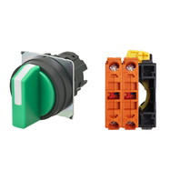 セレクタスイッチ(φ22), 非照光, 3ノッチ, 樹脂ベゼル, 右に自動復帰, 操作部色: 緑(不透明), IP66, ねじ端子台, 接点構成: -/NC/NC