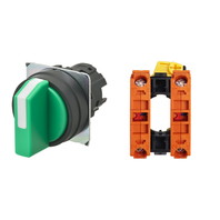 セレクタスイッチ(φ22), 非照光, 3ノッチ, 樹脂ベゼル, 右に自動復帰, 操作部色: 緑(不透明), IP66, ねじ端子台, 接点構成: NC/-/NC