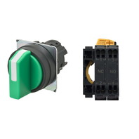 セレクタスイッチ(φ22), 非照光, 3ノッチ, 樹脂ベゼル, 右に自動復帰, 操作部色: 緑(不透明), IP66, プッシュインPlus端子台, 接点構成: NO/NC/-