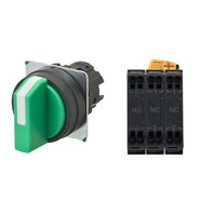 セレクタスイッチ(φ22), 非照光, 3ノッチ, 樹脂ベゼル, 右に自動復帰, 操作部色: 緑(不透明), IP66, プッシュインPlus端子台, 接点構成: NC/NC/NO