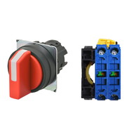 セレクタスイッチ(φ22), 非照光, 3ノッチ, 樹脂ベゼル, 右に自動復帰, 操作部色: 赤(不透明), IP66, ねじ端子台, 接点構成: NO/NO/-